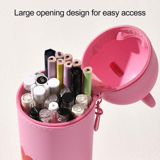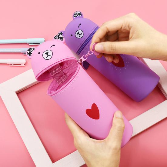 Этот высококачественный силиконовый пенал предлагает мягкое, приятное на ощупь покрытие с гладкой поверхностью, которое удобно держать и легко чистить.. Благодаря очаровательному дизайну в форме медвежонка в нескольких цветах, он привлекает эстетические предпочтения студентов своим милым и игривым видом..