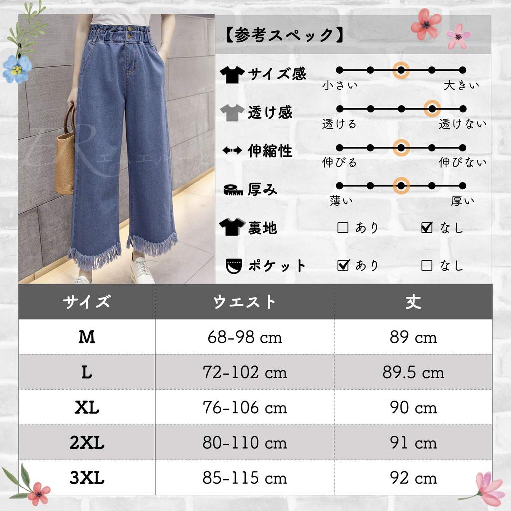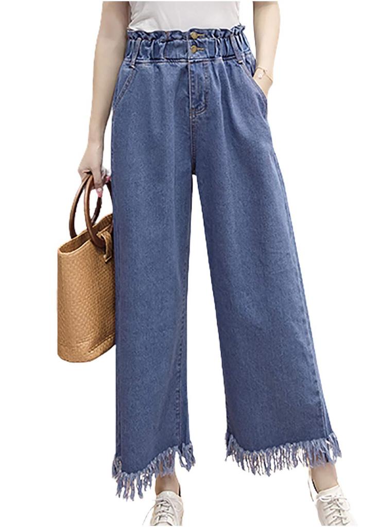 Представляем широкие джинсовые брюки с эффектным дизайном подола с бахромой♪ Они добавят изысканности вашему образу и сделают его стильным◎ Широкие брюки, расширяющиеся к низу, мягко скрывают ваши ноги, маскируя те самые проблемные линии бедер! Вы можете носить их с уверенностью♪ Брюки с высокой талией визуально удлиняют и стройнят ноги♪ Удобный эластичный пояс облегчает надевание и снятие◎ Эти стильные джинсовые брюки с бахромой по низу идеально дополнят ваш образ, просто заправив в них компактный топ! Они наверняка будут хитом в предстоящем сезоне◎