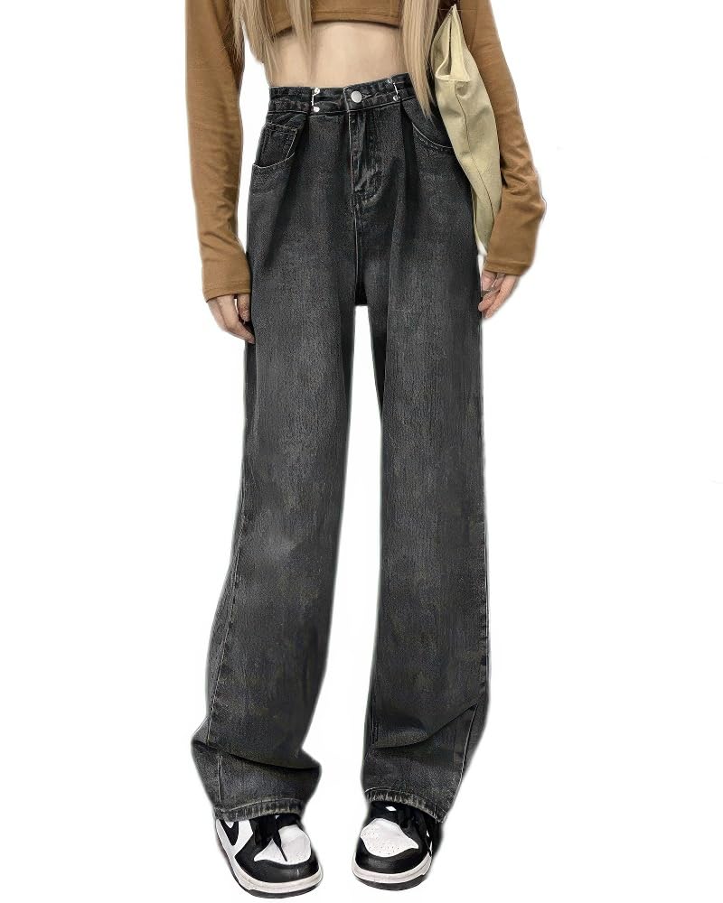 HIMATI Denim Jeans with Loose Wide Leg Comfortable Perfect for Commuting Gray M Women's High-Waisted Waist-Shaping Tucks, Fit, Jeans, Fit,