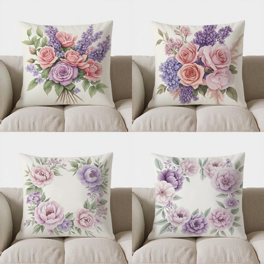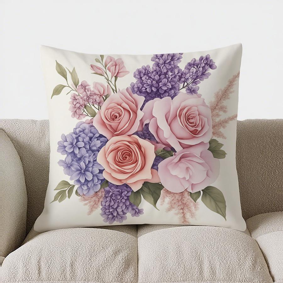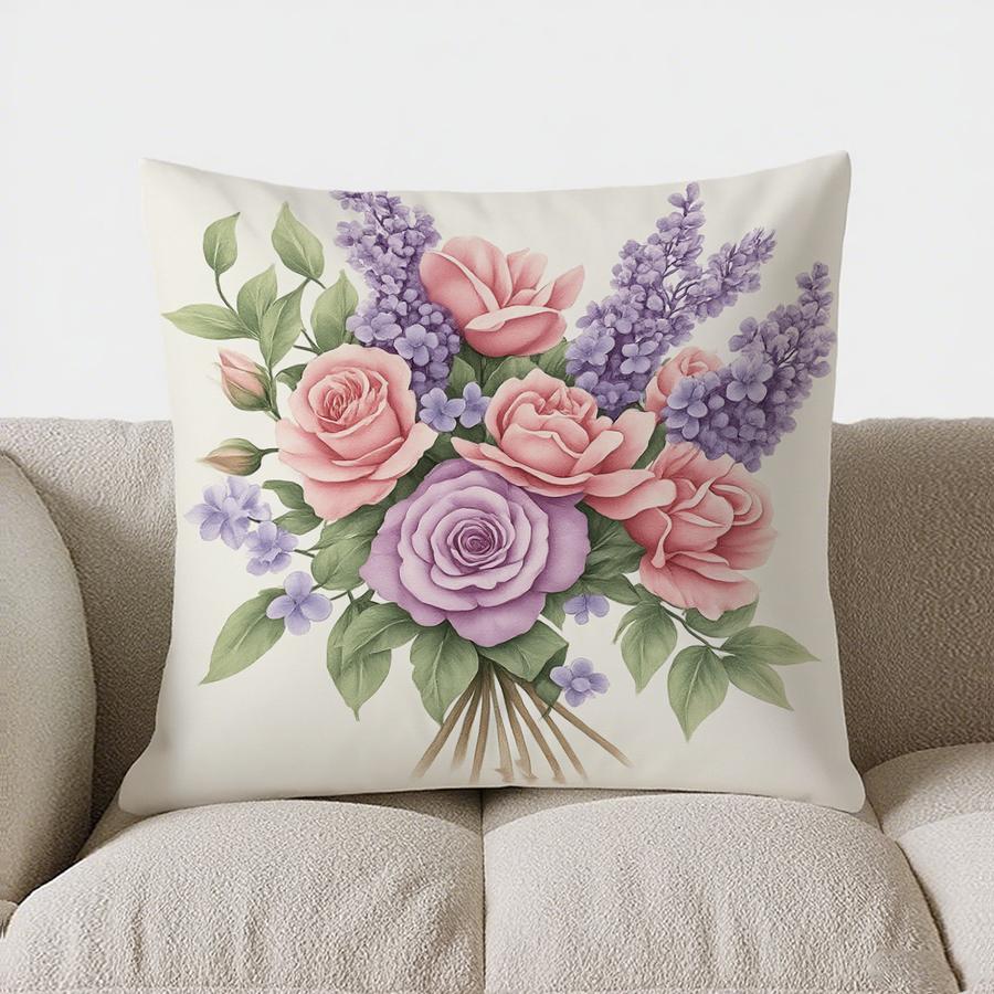 Домашний декор Букет из розовых &; Фиолетовая Цветочная Наволочка Декоративная Подушка Подходит Для Дивана Спальни Автомобиля