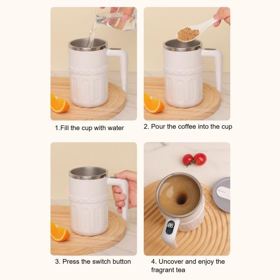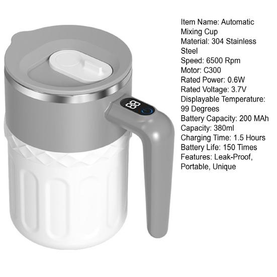 Легко смешивайте свои любимые напитки всего двумя касаниями для активации встроенного перемешивающего устройства, а четкий светодиодный экран отображает температуру жидкости в реальном времени для предотвращения ожогов.. Эта чашка с эргономичной ручкой и устойчивым нескользящим основанием обеспечивает удобный захват и надежную устойчивость.. Идеальный выбор подарка на дни рождения, праздники или особые случаи, сочетающий инновации и практичность в одной стильной упаковке.