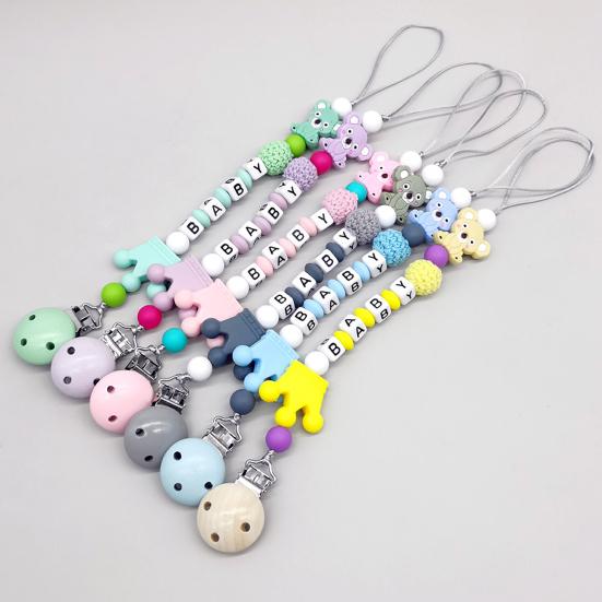 Эта цепочка для пустышки изготовлена из пищевого силикона и экологически чистого пластика, что гарантирует отсутствие запаха, мягкость и нежность к коже вашего ребенка.. Украшенный очаровательными бусинами с буквами, складывающимися в слово «BABY» в центре, он добавляет персонализированный и декоративный штрих.. Доступный в нескольких красочных комбинациях, он удовлетворяет различные стилистические предпочтения и помогает различать детские вещи..