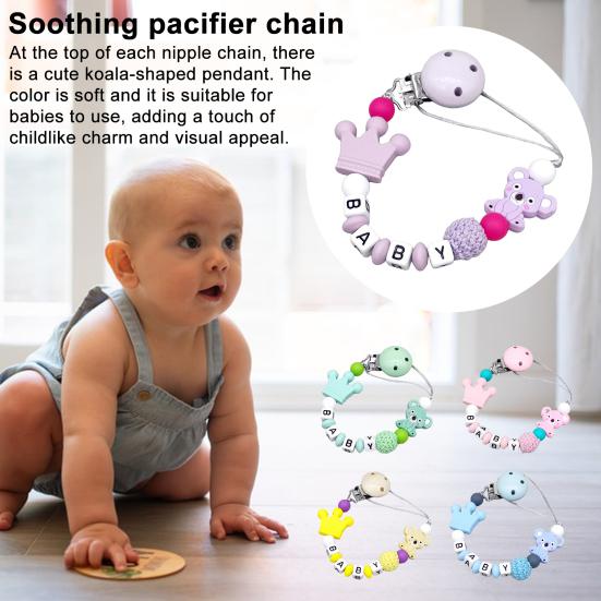 Очаровательный кулон в виде коалы: Цепочка, украшенная очаровательным кулоном в виде коалы сверху, сочетает в себе мягкие пастельные тона и игривую эстетику.. Этот милый мультяшный элемент усиливает сенсорный опыт ребенка и добавляет восхитительный декоративный вид, подходящий для младенцев.