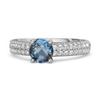 Sterling silver ring with 0.78 Ct round blue sapphire and pave band. A timeless engagement or anniversary design.