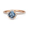 Sterling silver halo ring featuring a 5 mm round blue sapphire and pave accents. A brilliant 1.10 Ct design perfect for special occasions.