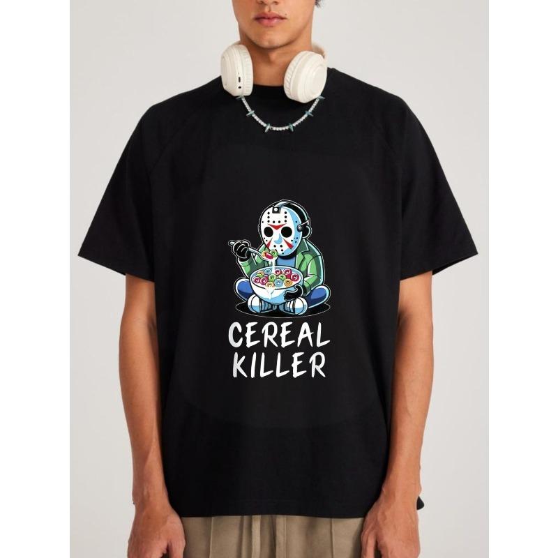 Белая хлопковая футболка с Джейсоном Вурхизом, поедающим хлопья, и текстом Cereal Killer (Убийца хлопьев), пародийный дизайн на фильм ужасов для повседневной носки и Хэллоуин-вечеринки