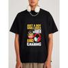 Белая футболка с круглым вырезом с графикой 'Gaming and Eating Ramen' (Игры и поедание рамена), с наушниками и миской лапши. Повседневная одежда для геймеров и любителей еды