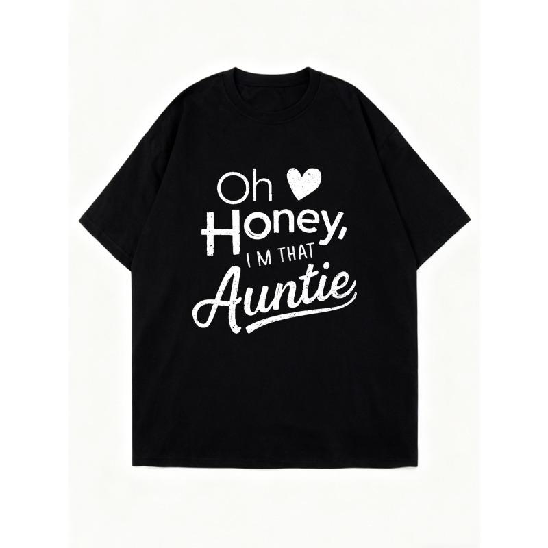 Футболка оверсайз черная с принтом текста и сердца 'Oh Honey I M That Auntie' повседневная летняя одежда для женщин