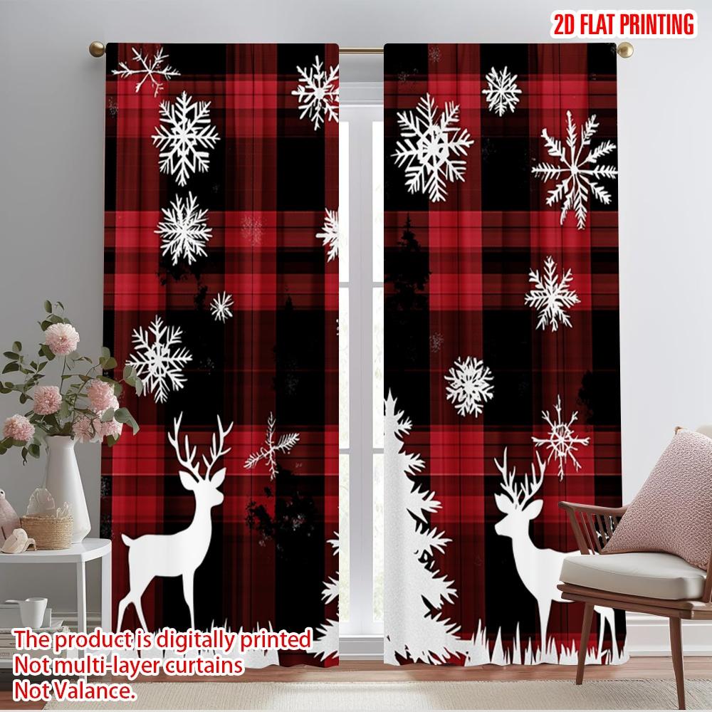2 шт., 2D плоская печать Креативные шторы Клетка буффало Олень Снежинки (4) Универсальный полиэстер (без удилища) Праздничный Идеально для