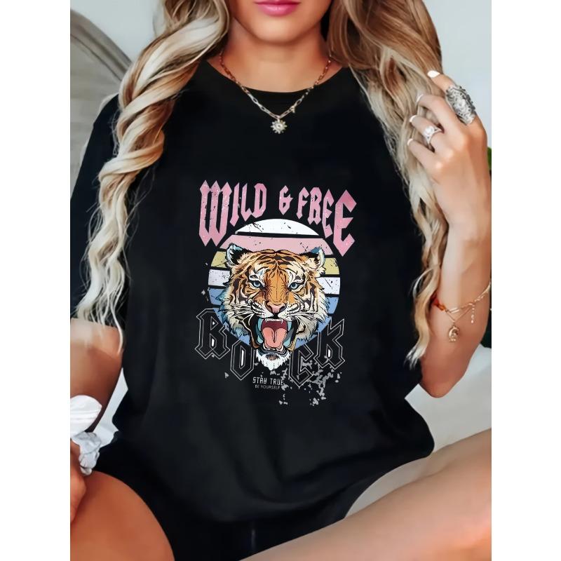 Женская повседневная футболка с принтом черного тигра, дикая и свободная, рокерская, с графическим заявлением, для повседневной носки, летние наряды, уличная мода