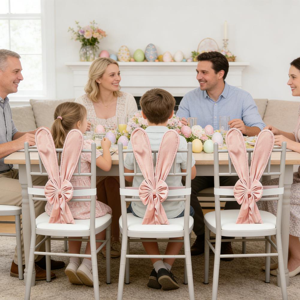 Chair Decorations Easter Bow Ornaments Rabbit Ear Design Chair Decoration For Party With Elastic Straps For Home Restaurant