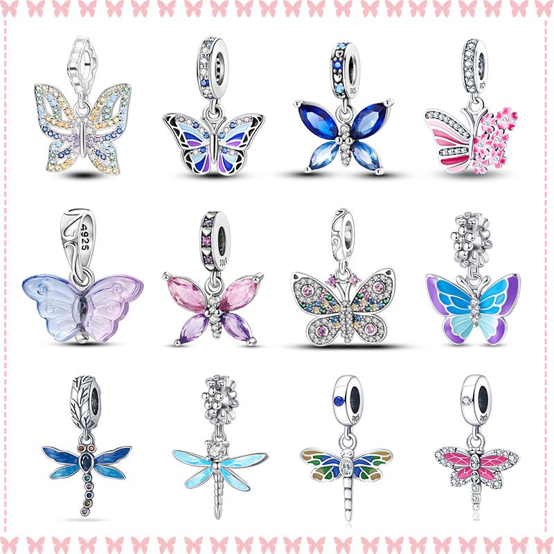 925 Silver Butterfly Dragonfly Charms Colorful Beads for DIY Bracelet Making Handmade Jewelry Supplies