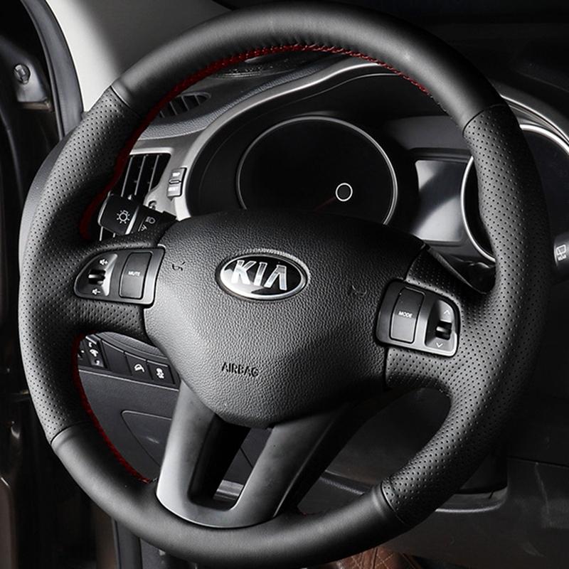 Ручная вышивка Чехлы на руль Черная Микрофибра Кожаная Автомобильная Накладка на Руль Для Kia Sportage 3 2011-2014 Kia Ceed 2010