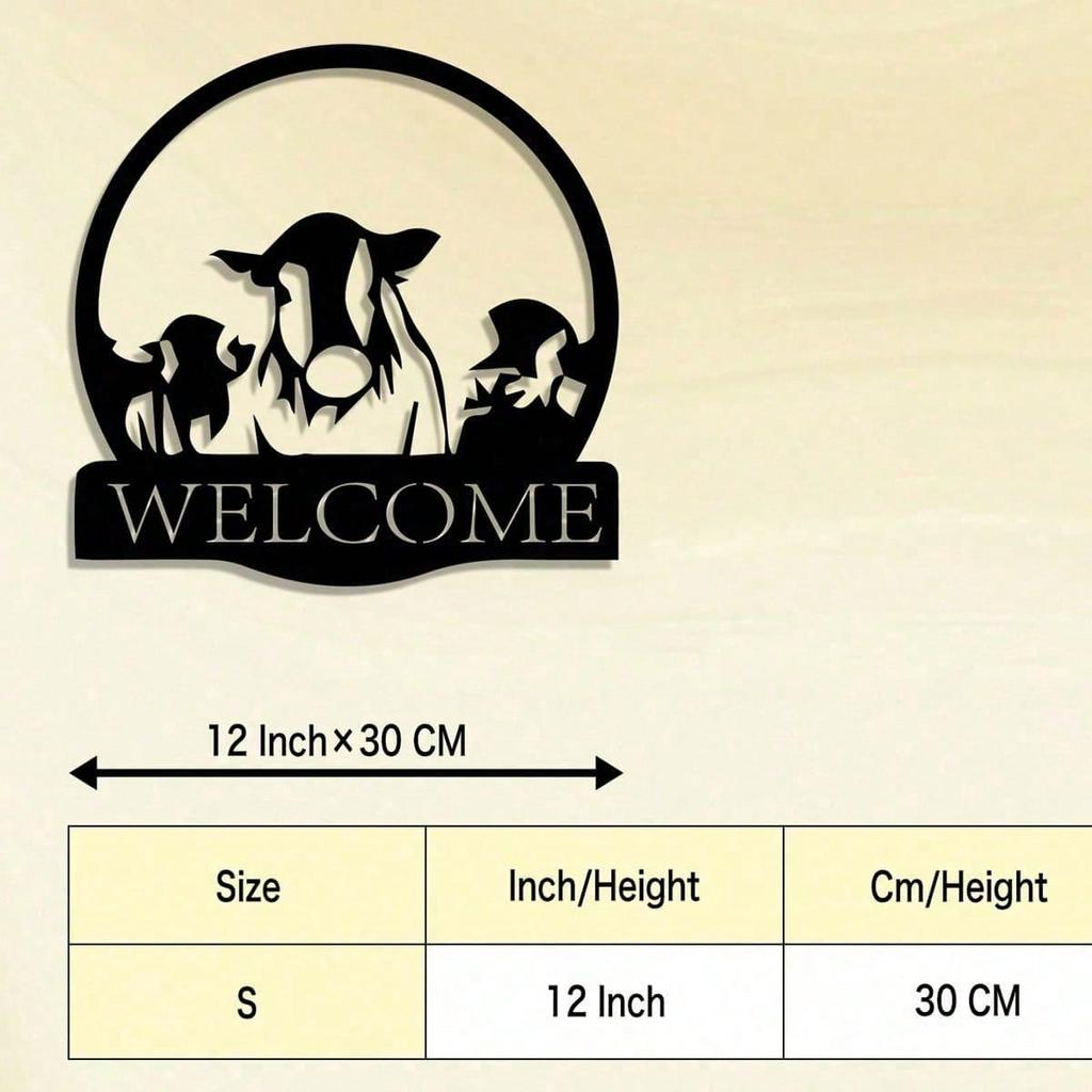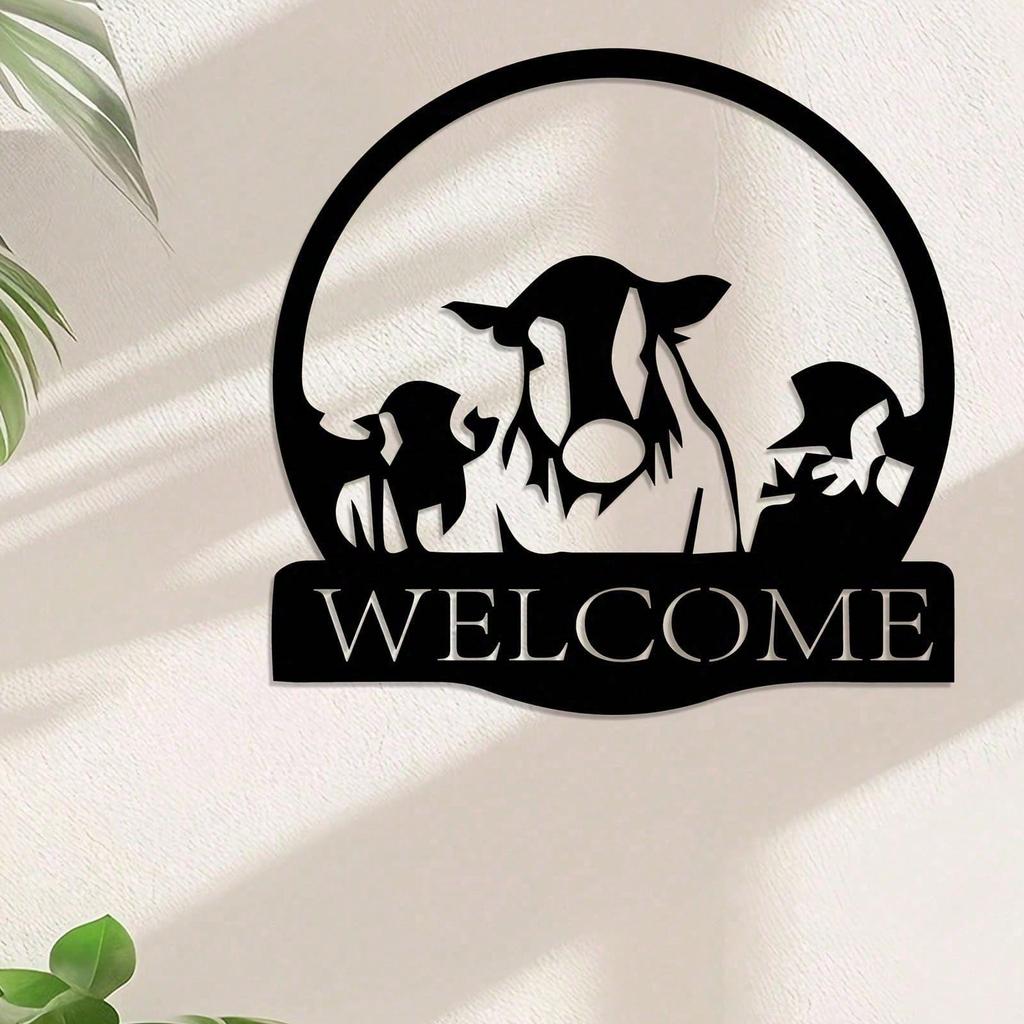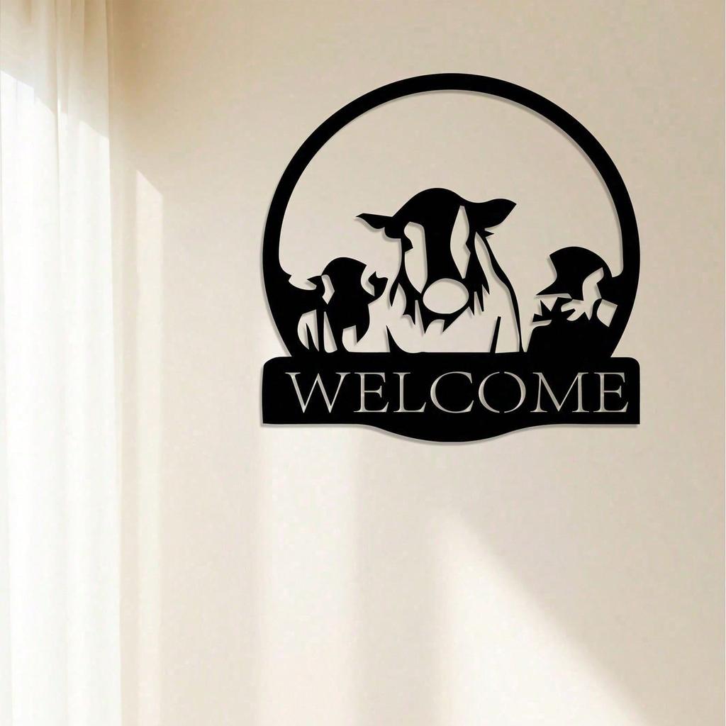 Wrought Iron Wall Art Black White Cow Silhouette Farm Decor Welcome Sign Housewarming Gift