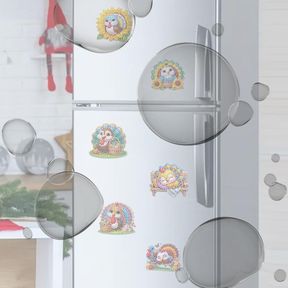 6pcs 2D/flat Soft Magnetic DIY Diamond Art Fridge Magnet Kit Animals Diamond Painting Magnets Refrigerator Diamond Art Magnets