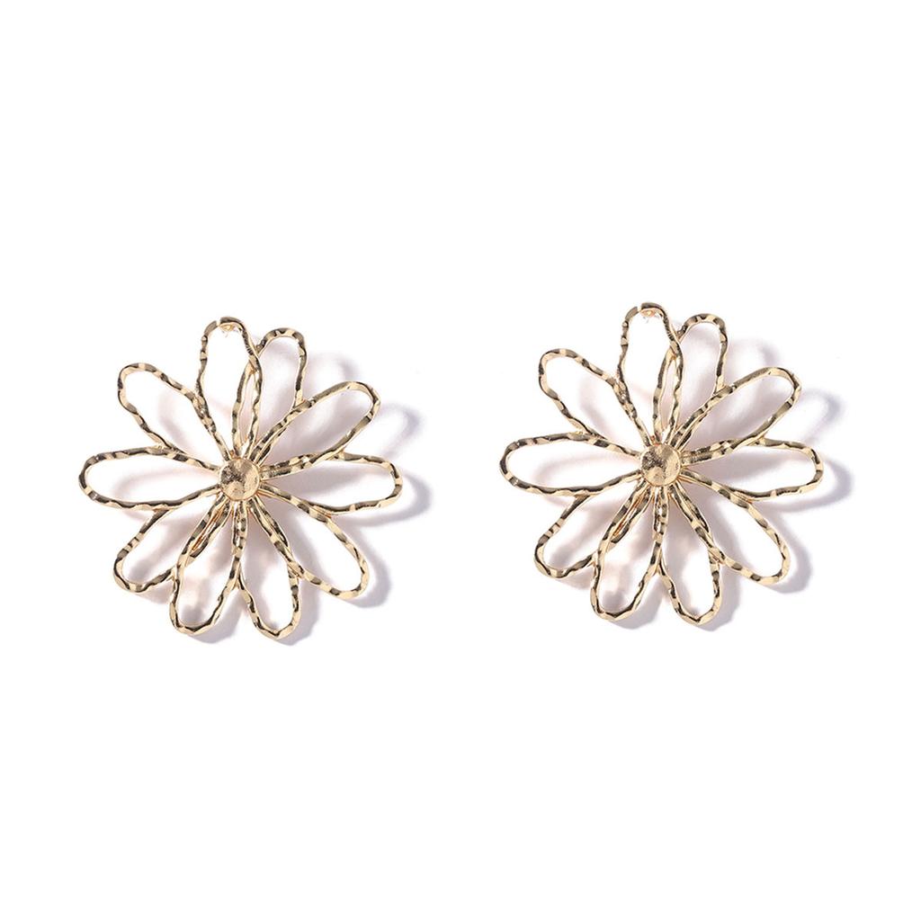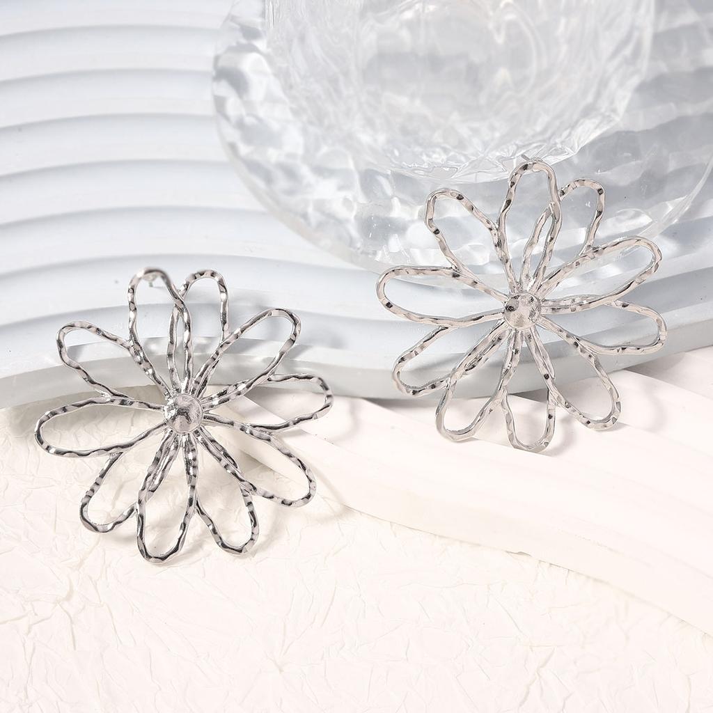 Новые преувеличенные и модные полые универсальные серьги-пусеты в виде цветка из сплава, креативные и простые модели для ежедневной носки