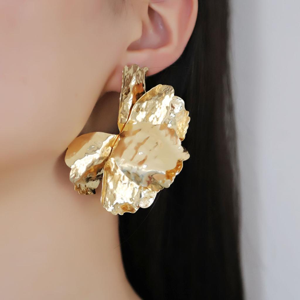 Ретро-серьги-гвоздики в виде крупных металлических цветов с неровной текстурой, имитирующей холодный ветер, универсальные и модные, для женщин.