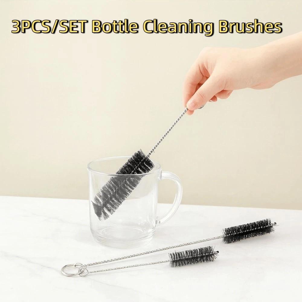 3 шт./комплект Мягкая щетка для волос Щетки для чистки бутылок Гибкие с отверстием для подвешивания Щетка для соломинок Многоразовые Инструменты для очистки труб
