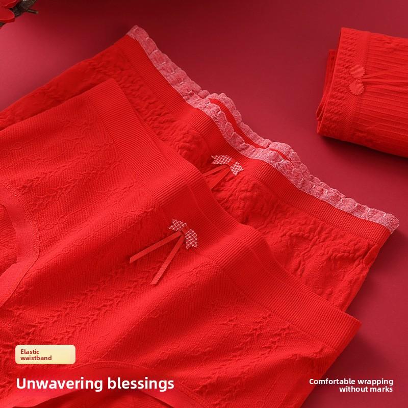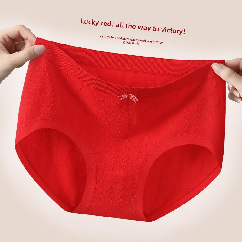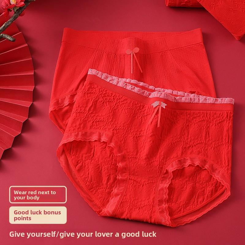 Женские трусы-слипы большого размера на весну и осень, красные, с высокой талией, треугольные, на год Бэнмин для замужества