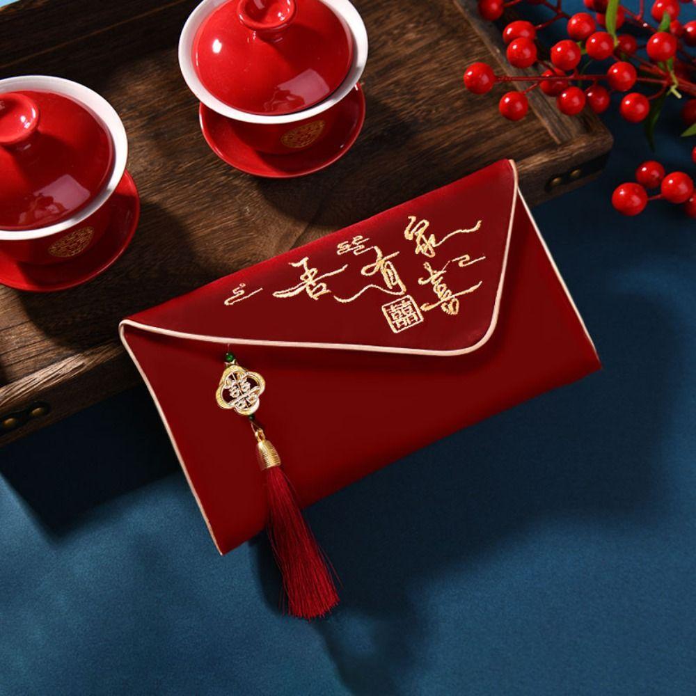 Множество узоров Свадебный красный конверт с кисточкой Дизайн Вышивка Красный денежный конверт Холщовая сумка Наилучшие пожелания Хунбао Праздник весны