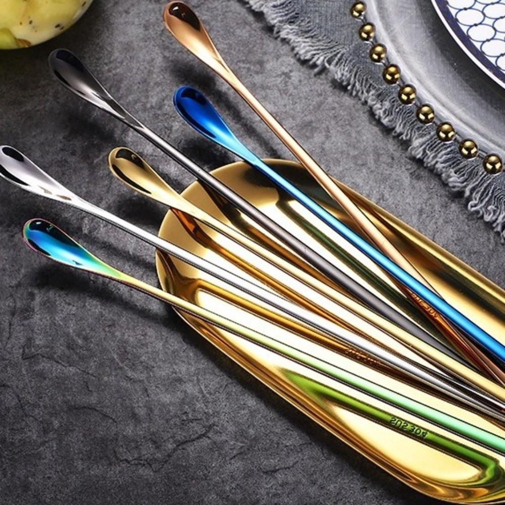 4PCS Stainless Steel Coffee Stirring Spoon Mini Thickened Drink Mixing Swizzle Stick Long Handle Portable Drink Stirrers
