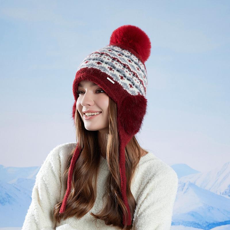 Зимняя уличная плюшевая теплая вязаная шерстяная шапка с большой головой