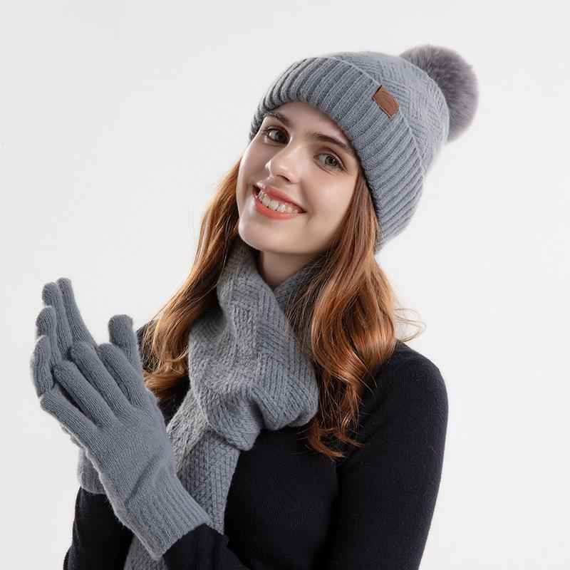 Зимний вязаный шерстяной комплект: шапка, шарф, перчатки (три предмета) — купить товар онлайн с бесплатной доставкой по всему миру!