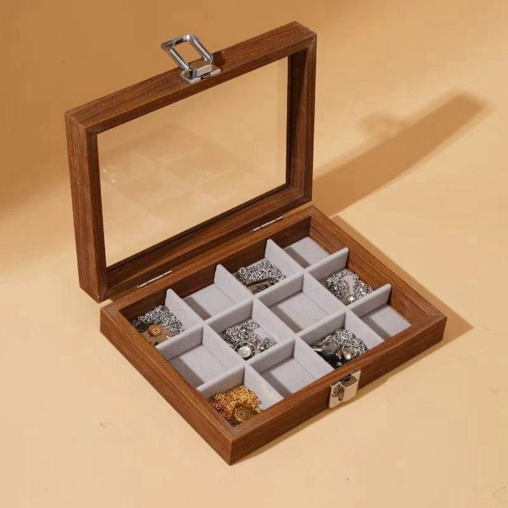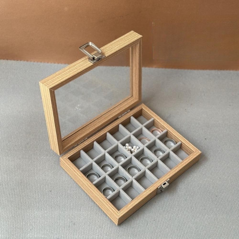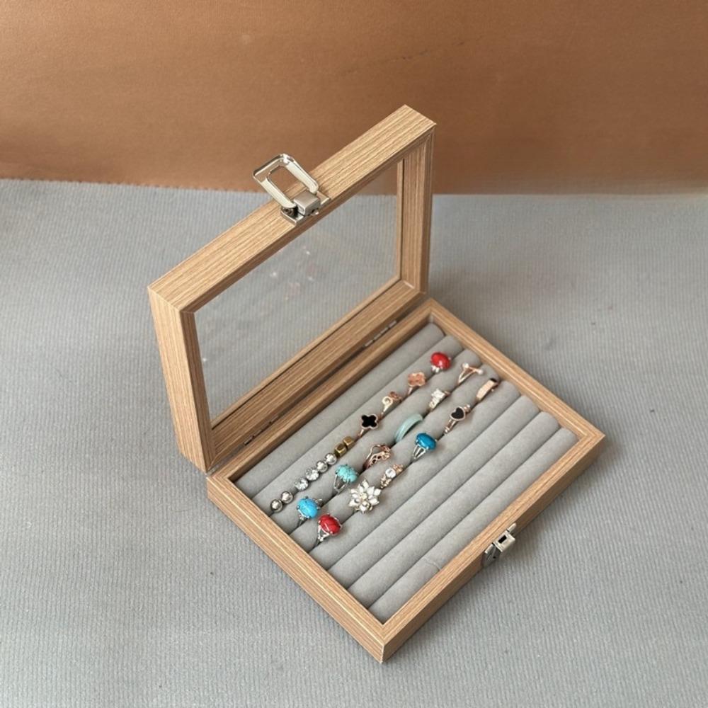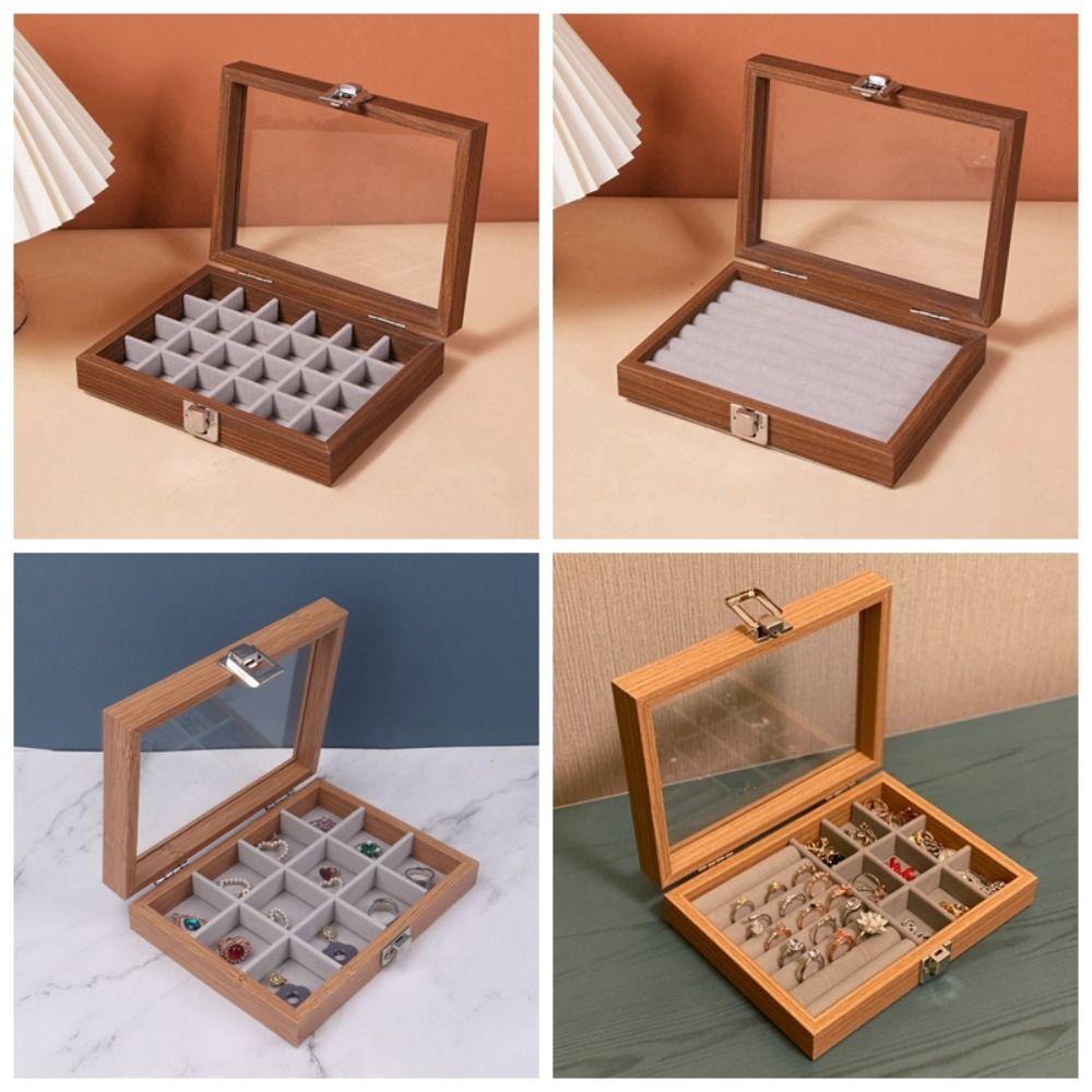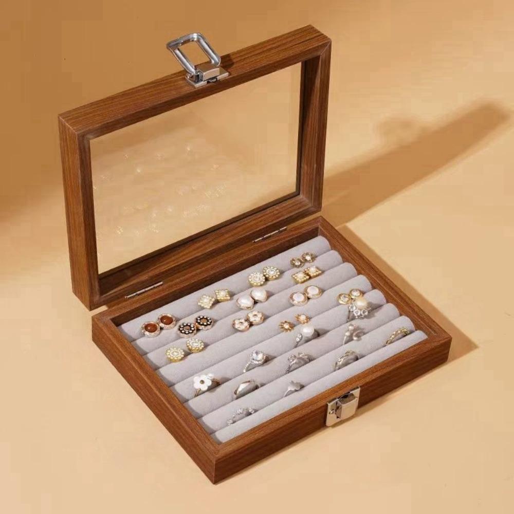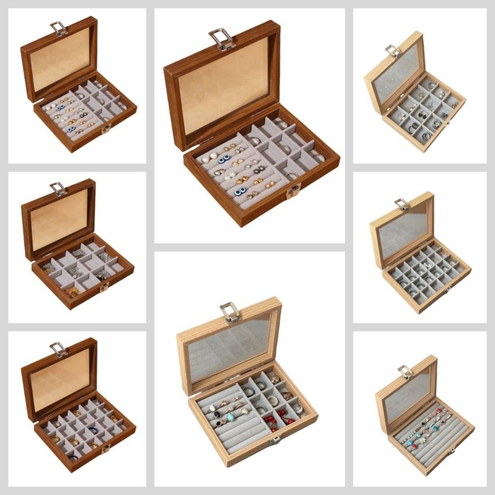Стеклянная крышка Деревянная шкатулка для украшений Бархатный лоток для демонстрации ювелирных изделий Футляр для колец Органайзер для ювелирных изделий Женский подарок
