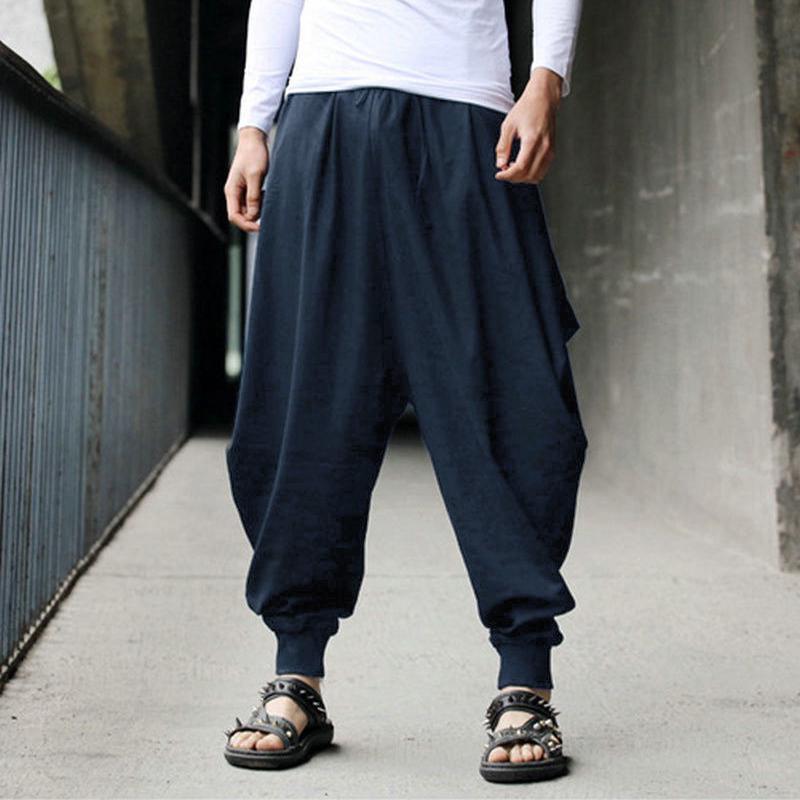 Хлопковые льняные шаровары, мужские мешковатые брюки, брюки в японском стиле с широкими штанинами, повседневные свободные брюки — купить товар онлайн с бесплатной доставкой по всему миру!