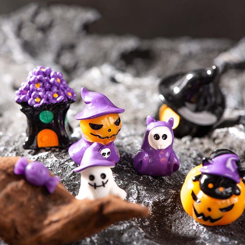Resin Craft Halloween Pumpkin Skeleton Figurines 3D Miniatures Ghost Ornaments Desk Decoration