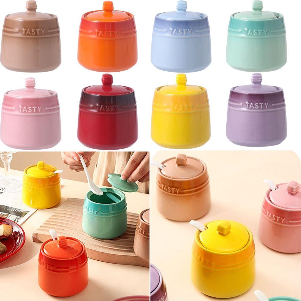 Керамическая банка для специй с градиентной расцветкой, ложка, кухонные емкости, современная сахарница, дом — купить товар онлайн с бесплатной доставкой по всему миру!