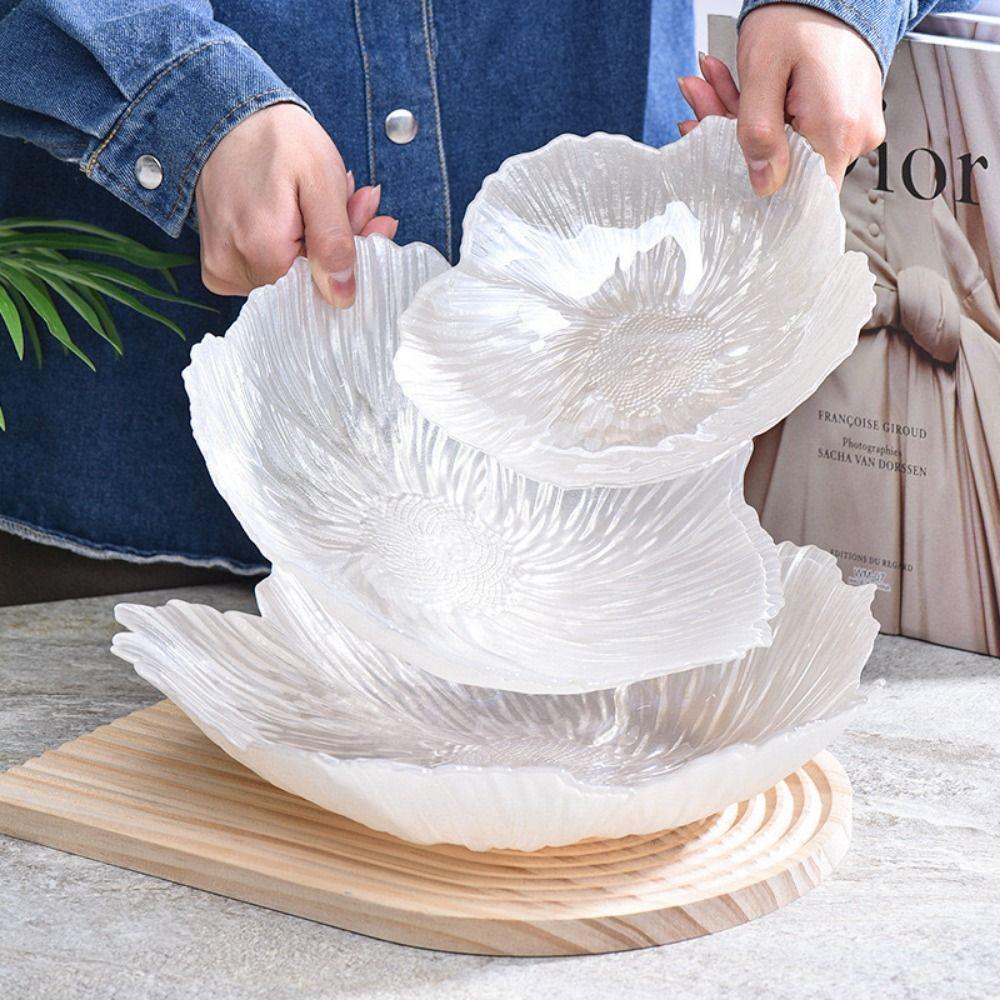 Уникальный и современный дизайн: Креативные стеклянные фрукты, закуски и тарелки для закусок в форме лепестков, созданные профессиональными художниками с использованием уникальных технологий, создают тарелки жемчужного цвета, не выцветающие, эстетически приятные и уникальные.