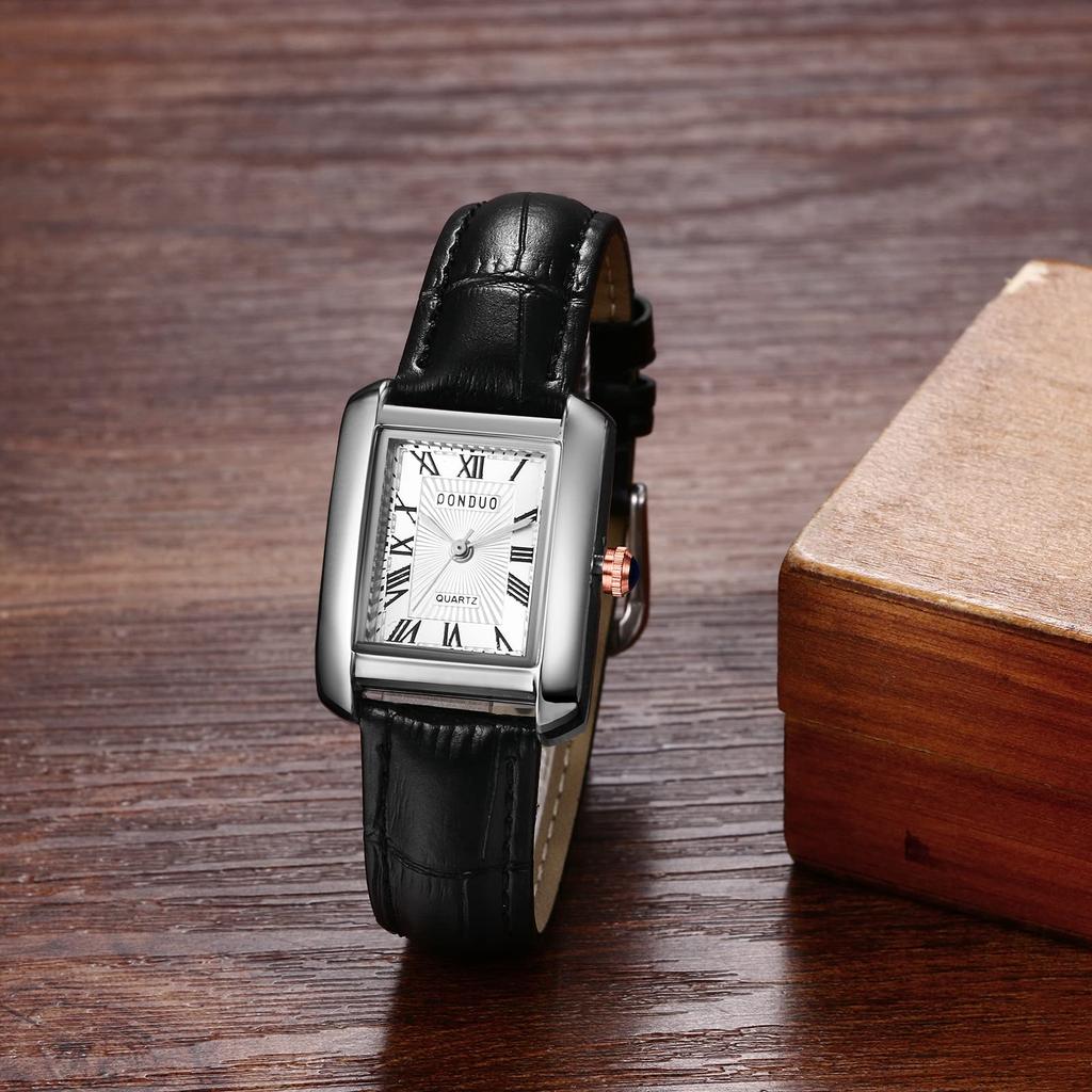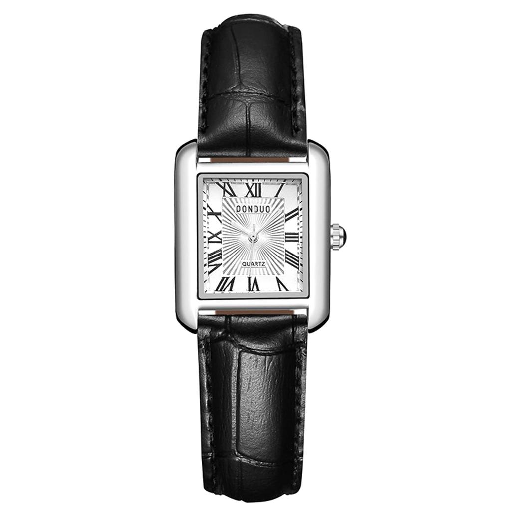 Women's Square Couple's Watch: Roman Numerals, Analog Display, Leather Strap, Waterproof Quartz Movement, Black - Perfect Gift for Him, Her,