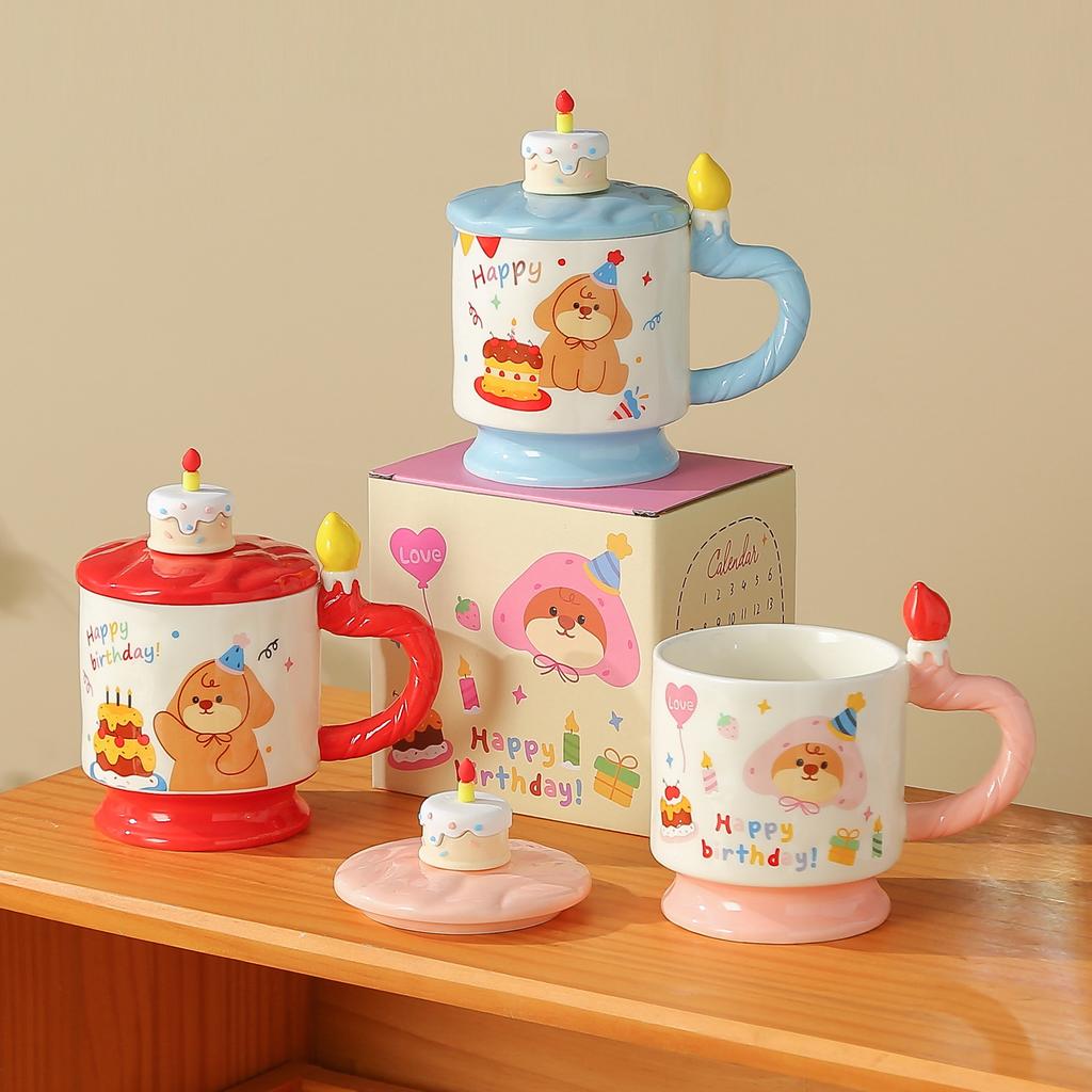 Керамическая кружка с крышкой в мультяшном стиле, кружка высокой ценности, милая, для девичьего сердца, стакан для воды, сувенирная кружка, стакан для питья для студентов