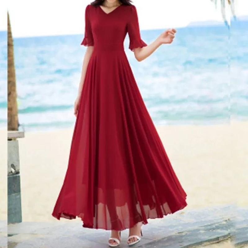 Элегантные модные платья с v-образным вырезом и короткими рукавами, однотонные стройные платья трапециевидной формы длиной до колена, удобная шифоновая женская одежда в стиле ампир