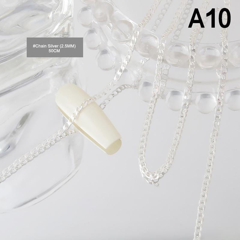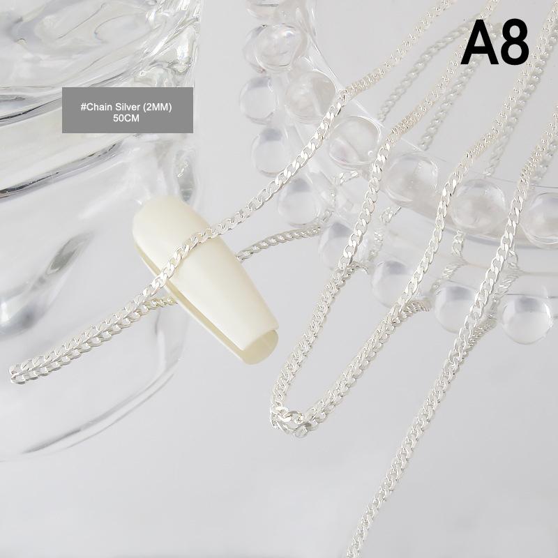 Цепочки для ногтей Золото Серебро Камни для ногтей Бусины 50 см Декор 3D Металл Стальные шарики Металлический панк-стиль Украшение для ногтей Ювелирные изделия для ногтей Шарм для ногтей