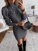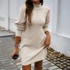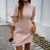 Женская одежда Осень Зима Элегантный стиль Высокий воротник Приталенное вязаное платье