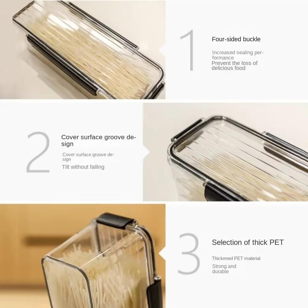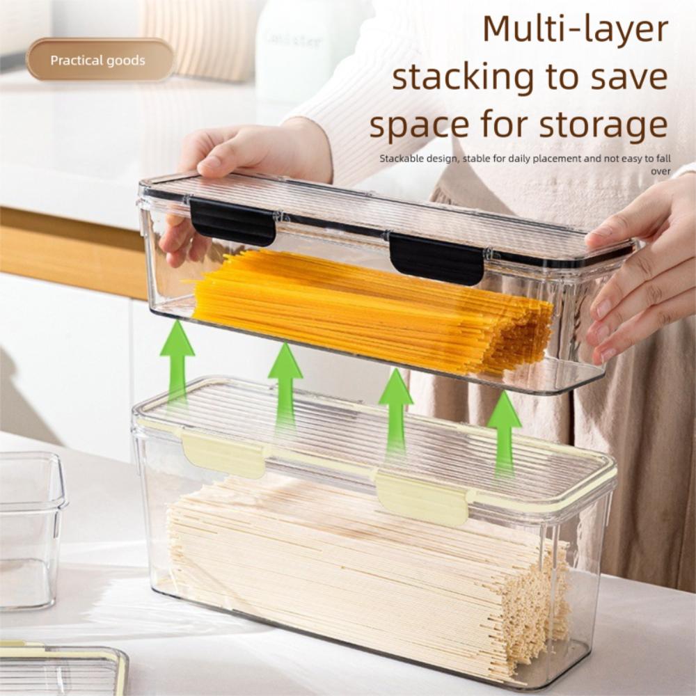 1. **Дизайн для сохранения свежести**: Этот контейнер для лапши и спагетти оснащен герметичной крышкой, которая сохраняет свежесть вашей пасты, поддерживая ее сухость и продлевая срок годности.