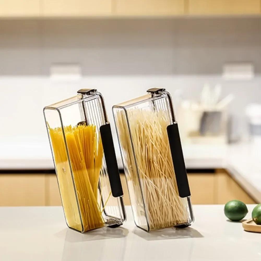 3. **Многофункциональное использование**: Помимо хранения пасты, этот универсальный контейнер можно использовать для различных сухих продуктов, таких как рис, хлопья и крупы, что делает его многофункциональным дополнением к вашим кухонным решениям для хранения.