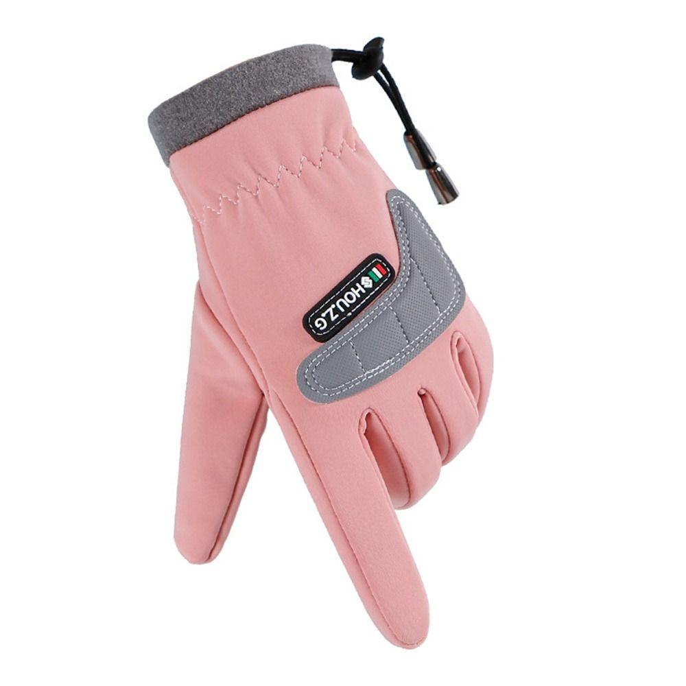 Drawstring Cycling Children's Gloves Keep Warm Fleece Lined Anti Slip Gloves Autumn Winter Style Thicken Outdoor Play Gloves
