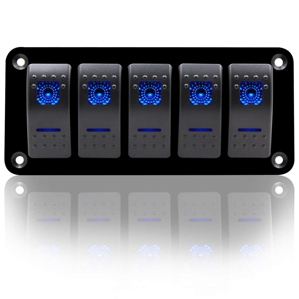 zmayastar 5-Way Waterproof Boat Switch Panel, 12-24V DC, for Cars, Ships, and Marine Use, Model SP-CYKG-01