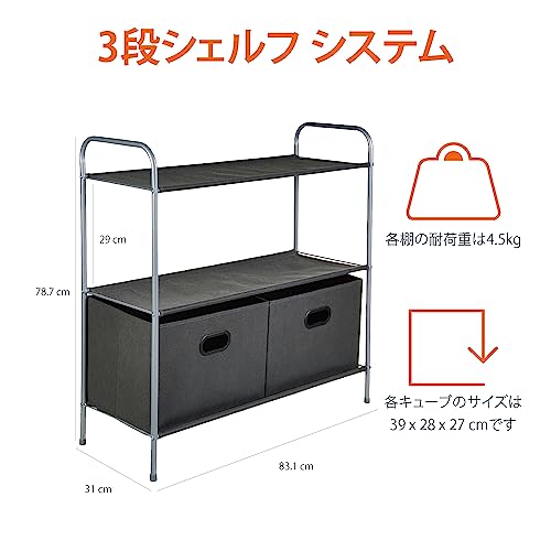Amazon Basics Стеллаж для хранения в шкафу с ящиками для хранения, 83,1 x 31,0 x 78,7 см, Серый, 3 полки
