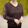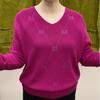 Весенне-осенний женский свитер с V-образным вырезом, свободного кроя, со стразами, ажурный вязаный пуловер