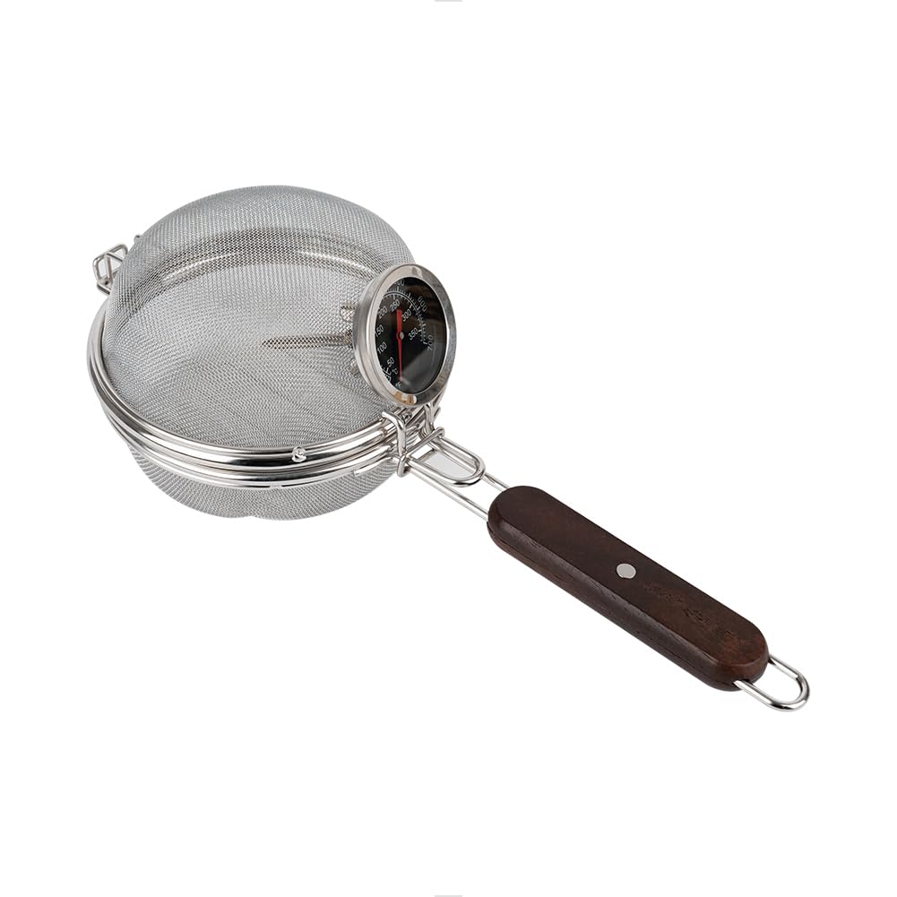 Stainless steel hand roaster with wooden handle, round, 14cm diameter, suitable for home use (includes cooking thermometer) — купить товар онлайн с бесплатной доставкой по всему миру!