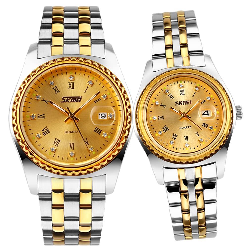 Популярные парные часы, matching sets для мужчин и женщин, классические золотые и серебряные дизайны с браслетами из нержавеющей стали, водонепроницаемые и роскошные