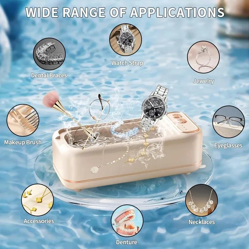 Портативная ультразвуковая очиститель для ювелирных изделий, часов, очков - Высокочастотная вибрация, USB-зарядка, дорожная машина