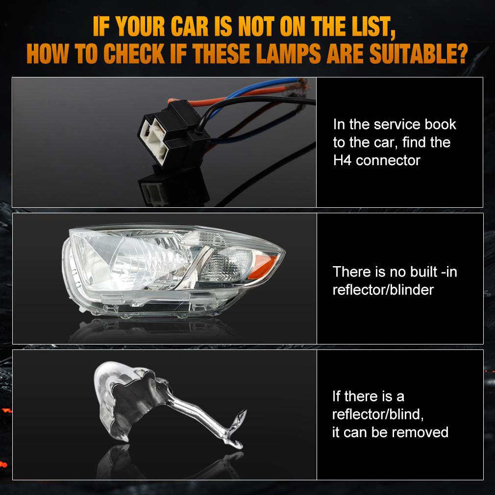 Дальний / Ближний свет : Объектив светодиодного проектора H4, диаметр линзы 37 мм, пожалуйста, подтвердите, что ваше отверстие больше 37 мм.