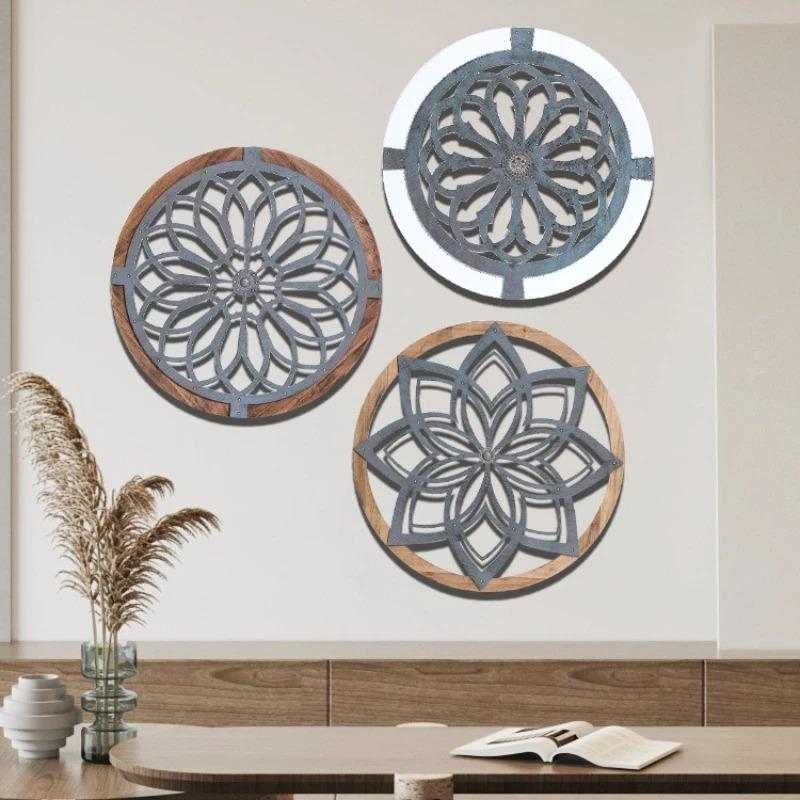 Круглое Деревянное Настенное Искусство Ручной Работы Резная Декоративная Панель Уникальный Цветочный Домашний Декор Стильное Подвесное Украшение для Гостиной — купить товар онлайн с бесплатной доставкой по всему миру!