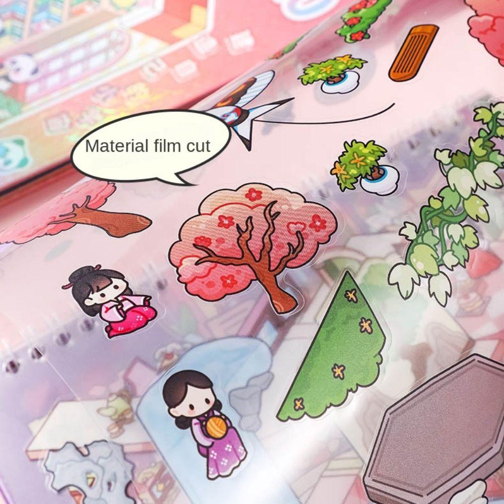 Каваий ПЭТ Миниатюрная Коллекция Сцен Визуальная Сборка Мультяшный Пейзаж Книга Наклеек 3D Сделай Сам 3D Сцена Карманной Кабины Наклейки