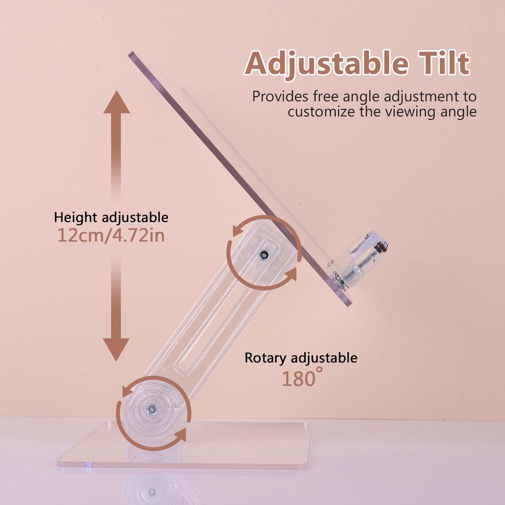 Acrylic Book Holder Stand Height Adjustable Reading Book Rest 180 Degrees Rotation Tablet Phone Holder Study Office Accessory